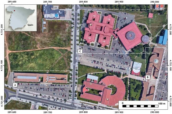 The different heating options contemplated in this work were designed to cover the thermal needs of three buildings placed at the University Campus of Vegazana in the province of León (Spain):