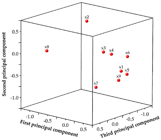 The load values of the three principal components are calculated (the load diagram is shown in Figure 3). The functional expression of each principal component is obtained according to the load values as follows.