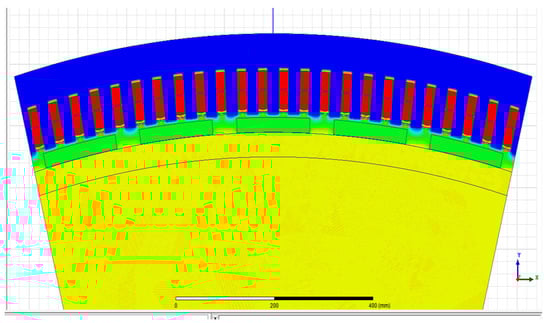 The stray capacitances of one 2 MW direct-drive and one 2 MW semi-direct-drive PMSG are calculated through the electromagnetic field numerical method, respectively. The generator models are shown in Figure 9 and Figure 10. The parameters of the two PMSGs are shown in Table 4.
