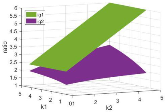 Combining Equation (22) with Equations (23) and (24), the available range of the two ratios is: