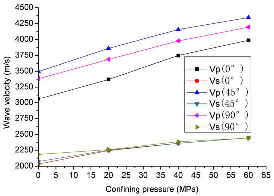 Figure 5 shows the P- and S-wave velocities in the LMX shale under hydrostatic loading between 0 and 60 MPa. With increasing confining pressure, the P- and S-wave velocities increase gradually and the P-wave velocity is higher than the S-wave velocity.