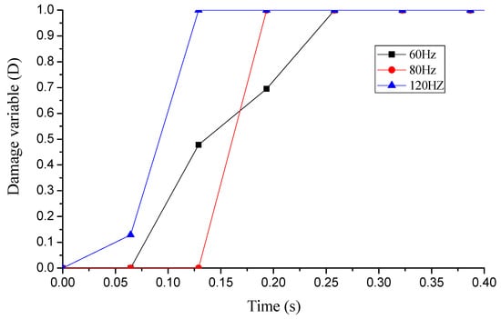 Damage variable of E2534 under different impact frequencies.