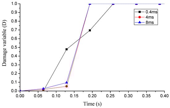 Damage variable of E2534 under different durations of impact load.