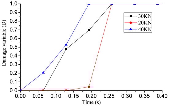 Damage variable of E2534 under different peak values of impact loads.