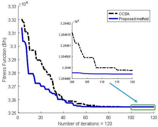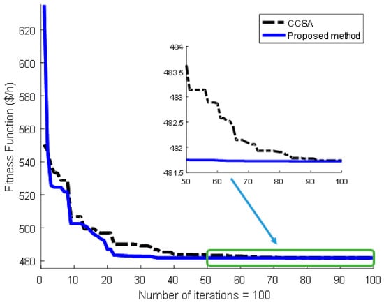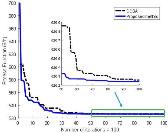 Figure 11. Comparison with CCSA indicates that the proposed method can provide an optimal solution with less cost than that of CCSA by
