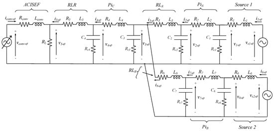 With this, all of the separate elements of the AC grid and the ACISEF itself have been analytically modeled. Note that the ‘Source’, ‘PI’, and ‘RLR’ elements are basic parts of an AC grid and can be separately added or combined (in series and in parallel) to form any type of AC grid. In future hypothetical works, if a new AC grid model analysis requires the incorporation of a new non-considered element (such as for instance passive filters), the reader can easily derive the associated matrix equation. This example-based exposition is not intended to cover all of the possible combinations that may exist.