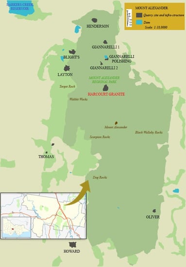 Location of Harcourt granite quarry near Mount Alexander [32].