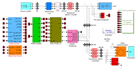 The proposed multifunctional DVR is implemented in MATLAB-Simulink for mitigating of balanced, unbalanced voltage sag/swell, fluctuations and distortions voltage. The simulations are based on the real power system as shown in Figure 9 and the details of the system parameters are given below: