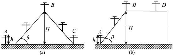 The schematic map of power towers’ locations. (a) mountain; (b) hillside.