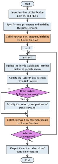 The whole process of coordinated charging of PEVs based on PSO algorithm is shown in Figure 3.