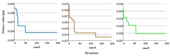 The optimization is repeated 50 times, and the results are shown in Table 6. Over 50 runs, the final simulation results are chosen based on the best fitness value, which is closest to the average value in Table 6. Figure 6 shows the convergent curve of the PSO algorithm. The calculation time in all cases is less than 120 s. Therefore, the PSO algorithm finds the best fitness values with fast convergence rate, which shows the superiority of the algorithm.