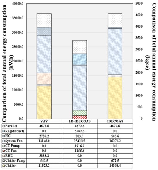 The total annual energy consumption of each system in the Guangzhou region.