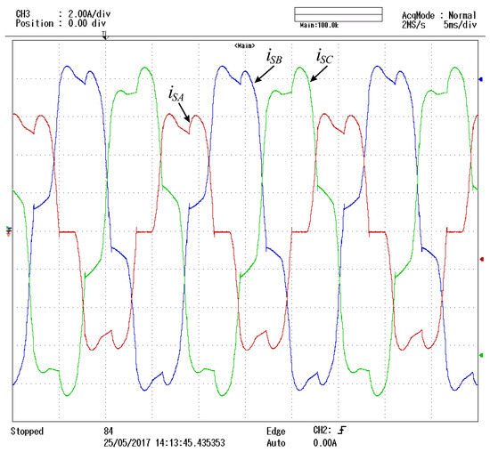 Three-phase grid current waveforms with the DHPF-NSI disabled.