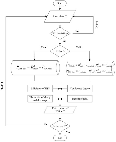 This section analyzes the wind curtailment power under different control strategies. This section also determines the power and energy capacity of the corresponding energy storage system. The rated power and energy capacity of the energy storage system are determined by comparing the economics of each control strategy. The configuration process of ESS’s capacity is shown in Figure 7. (X = A: Maximum value method; X = B: Mean value method).