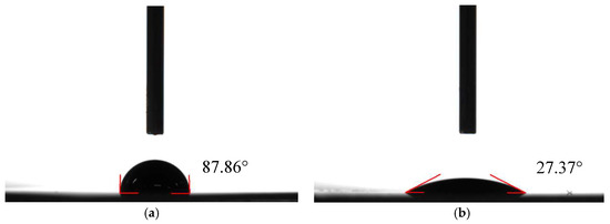Contact angle images of PEDOT:PSS aqueous solution drops on the (a) H-terminated and (b) SiOx-terminated silicon substrates.