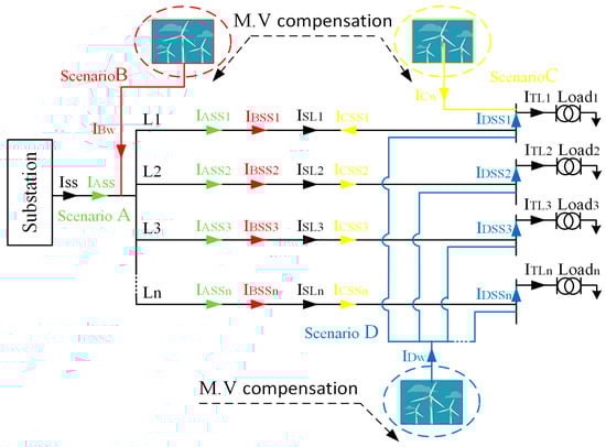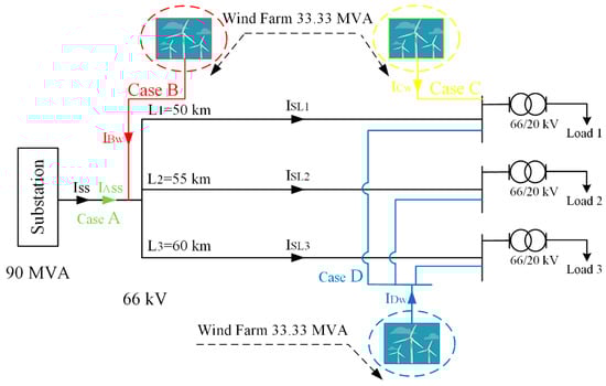 | Constituent of the wind farm line current going through line I for scenario B, C and D respectively | |