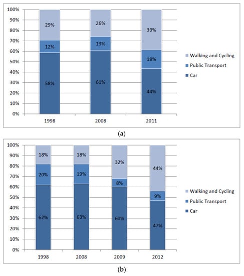 Third, by associating this with the modal share data, we seek to understand how the policies introduced in the 2000–2010 period affect the modal share and subsequently draw conclusions on what is an effective policy mix for triggering modal shift towards car alternatives. To reinforce our analysis, we have asked local civil servants in the four cities to reflect on it. We did this by contacting the head of the mobility department by telephone and email, who then forwarded the request to the suitable person (i.e., one knowledgeable on the period of study) who then contacted us (also in association with the head of the department).