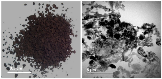 Figure 5. (Left) Isolated kerogen of Well D; and (Right) the same sample under a scanning transmission electron microscope (STEM).