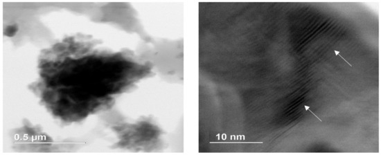 Using high-resolution transmission electronic microscope (TEM) also showed such change in kerogen molecular structure specifically clustering of aromatics [17,77]. Kerogen that was isolated from the sample of Well D, which has the highest maturity, was imaged in a novel approach under Hitachi HD-2300A Dual EDS Cryo STEM (scanning transmission electron microscope), Figure 11. The image revealed the imperfect stacked aromatic layers in the sample with higher maturity. We were not able to capture the same image for lower maturity samples.