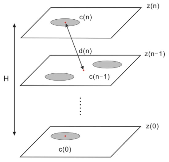 Specific surface area (the surface area per bulk unit volume) and tortuosity are important macroscopic pore structure parameters of porous material [,,], which can reflect structural properties of the cracks in shale []. In this study, the tortuosity is defined as the ratio of the length of the path and the distance between its ends along z-axis [] (Figure 14).