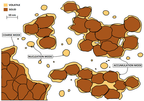 Typical particles depicted schematically: coarse mode, nucleation mode, and accumulation mode (adapted from ref. [13]).