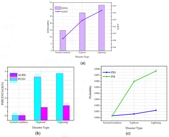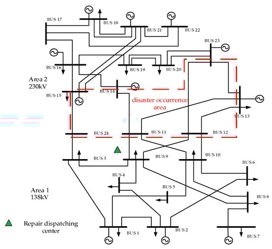 The economic loss of lost load is considered to be $10,000/MWh [30,31] for really important load, $6979/MWh for commonly important load, and $3816/MWh for ordinary load. There are five members in each repair team, and the average wage of each member is assumed to be $70/h. Other repair costs are $12,996 × 103, including the generation cost, and the resource cost, etc.