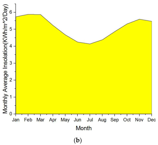 (a) Temperature profile of the location; (b) Irradiance profile of the location.