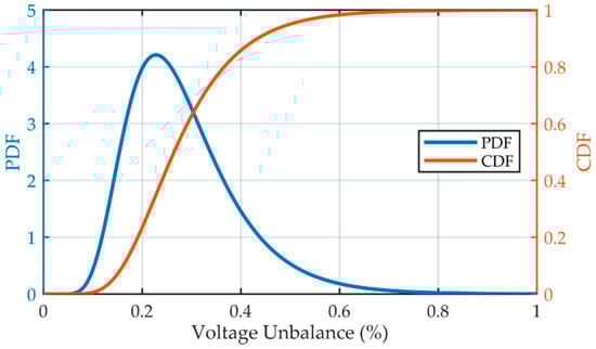 Probability Density Function (PDF) and Cumulative Distribution Function (CDF) of load voltage unbalance.