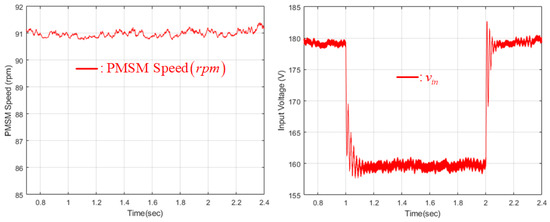 Permanent magnet synchronous machine (PMSM) speed and input voltage behaviors.