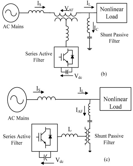 (a) Shunt APF with shunt PF; (b) Series APF with shunt PF; and (c) APF connected in series with shunt PF.