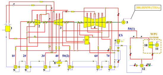 - Wang, L. Modification Technology and Operation Optimization of 300 MW High Back Pressure Heat Supply Power Unit; North China Electric Power University: Beijing, China, 2017. (In Chinese) [Google Scholar]
