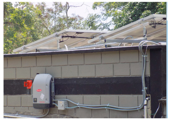 Lastly, the efficiency of photovoltaic modules is not affected in the irradiation interval between 400 and 1000 W/m2, being consistent with what is expressed in [55]. The average efficiency of the inverter was in the range of 75–94% for the different values of irradiation. These results are comparable with the efficiency reported by the manufacturer of 96.9%; also, they are similar to those found in studies conducted in Europe and the United States with mean values of 88% for Fronius inverters [57].