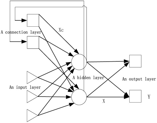 The basic Elman network is composed of an input layer, a connection layer, a hidden layer, and an output layer, as shown in Figure 3. The activation function of the hidden layer is nonlinear, e.g., the sigmoid function or the tan-sigmoid function. The activation function of the connection layer and the output layer is linear.