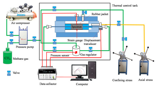 The schematic diagram of the apparatus used is shown in Figure 3. The system mainly involved two parts. One was for hydrate formation and the other one was for triaxial compression. The detailed information can be referred to Gao et al. [11].