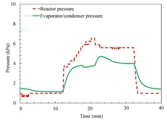 - When the pressure of the reactor decreased to the target pressure of the evaporator, the connecting valve between the evaporator and reactor was opened to start the heat release process. The connecting valve would be closed until the sorption time reached 10 min.