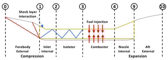 Flow stations in a scramjet engine.