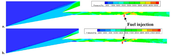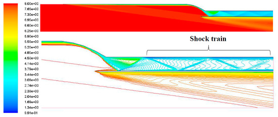 Mach contour of same orientation ramjet and scramjet inlets at Mach 8.