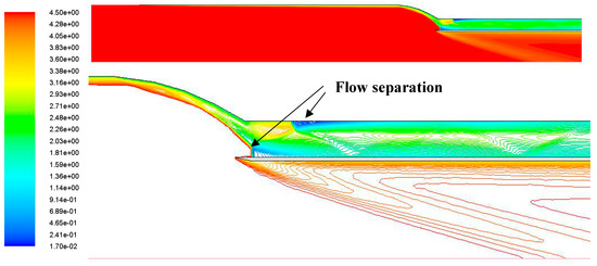 Mach contour of the rotated ramjet inlets at Mach 4.5.
