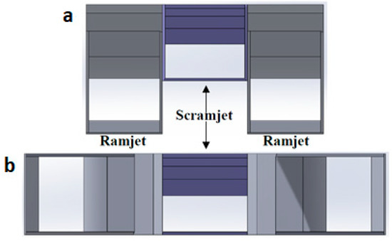 A feasible combination of a dual-mode ramjet-scramjet is given by Figure 7, such that during high-altitude scramjet flight the ramjet inlets are sealed to prevent excessive drag induced by shockwaves on the ramjet forebody.