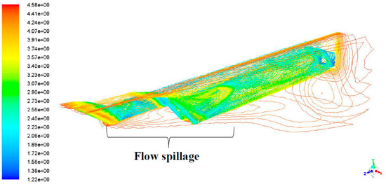 Figure 3 illustrates an example of a symmetrical internal compression system, where there is a line of symmetry along the centreline. It relies on combining oblique shockwaves to generate a uniform and parallel streamwise flow, thus the axial length can be shortened to obtain an adequate amount of compression. One detrimental issue with this system is that the extra compression surface can facilitate the generation of complex flows when the vehicle is not flying at its design speed, consequently the flow at the lower end spills below the notched cowl. Flow spillage (therefore spillage drag) decreases as the vehicle reaches closer to the design speed [6].