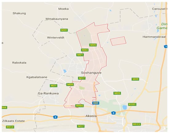 Statistical modeling was carried out on solar irradiation data collected from two weather stations within Gauteng province, that is, Johannesburg and Pretoria. These were analyzed for the use of the BS located in Soshanguve. Soshanguve is a township located about 45 km north of Pretoria under Gauteng province, South Africa. It lies between a latitude and longitude of 25.5226° S and 28.1006° E, respectively. Figure 4 shows the map of Soshanguve.