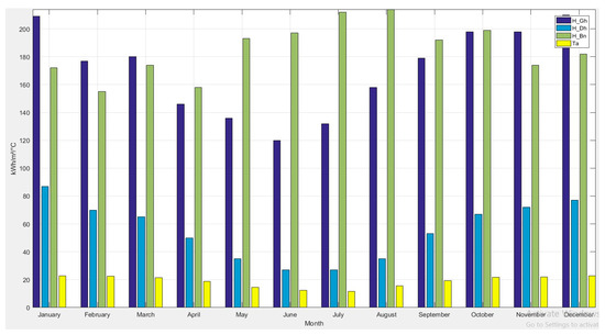 The average monthly solar data resources over the period of 10 years considered are shown in Figure 5.