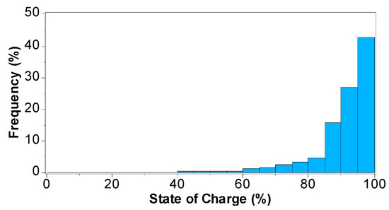 Average monthly percentage of state of charge (SOC) of the batteries.