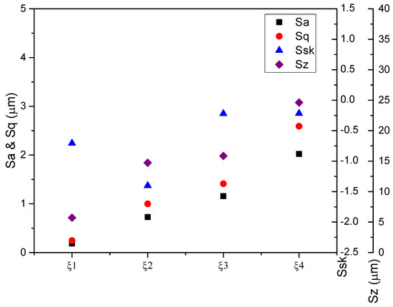 | Sq | surface roughness parameter-root mean square height (µm) |
