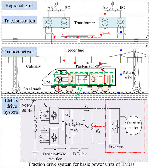 - Wang, H.; Wu, M. Test and analysis on low frequency oscillation of traction power system voltage caused by EMUs. In Proceedings of the 27th China College Power System and Automation Annual Conference, Qinghuangdao, China, 14–18 October 2011. [Google Scholar]