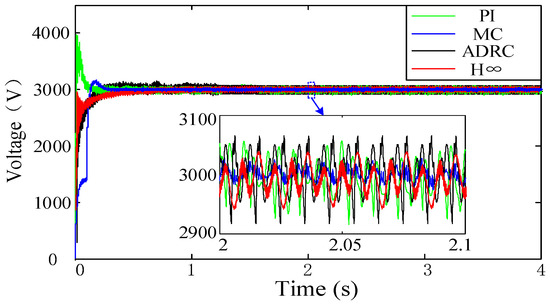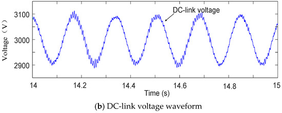 - In Table 6, the first set of data is the original value of the PI controller. When the original value of the control parameter Kp is exceeded, LFO will occur. If the control parameter Ku is reduced, LFO will also occur. In addition, it is noted that the set of parameters that exceed the original value of the control parameter Ki will cause a rectification failure. In Table 7, the first set of data contains the original values of the H∞ controller. It can be indicated that the system is stable in all cases. The control parameter K2 has a little influence on the stability of the system. However, the phenomenon that the DC-link voltage is about 12 kV will appear when the original value of the control parameter K1 is exceeded. The set of parameters that exceed the original value of the control parameter K3 can also cause this phenomenon. Actually, 12 kV DC-link voltage is not permitted in real-life operation. Thus, the problem should be studied in the future.