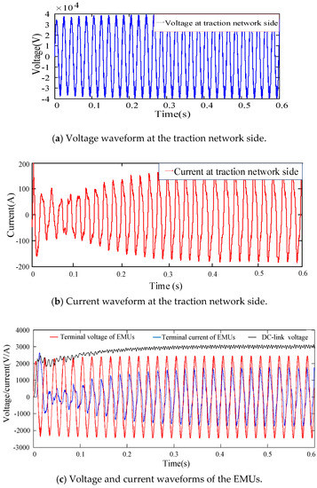 4.2. Simulation of Multi-EMUs Accessed in the Traction Network Based on PI Control