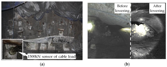 Figure 13. Plugging effect of the main ore pass: (a) Whole picture of plugging engineering; (b) Before and after ore lowering in the incline ore pass.