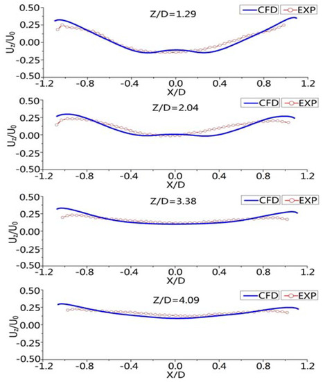 The experimental (EXP) and CFD results of velocity profile are shown in Figure 4. The horizontal coordinate is a dimensionless radical position in the combustor, and the vertical coordinate is the ratio of axial velocity and reference velocity. Figure 4 shows that the CFD results are almost consistent with the EXP results. It should be noticed that there are some difference between CFD and EXP near the combustor wall; this is duo to the fact the standard k-epsilon model could not precisely simulate the flow near the wall. However, the air flow in near wall is not the focus in this paper, so that the numerical simulation methods could satisfy the requirement of engineering analysis.