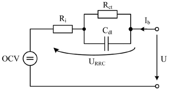 The dynamic voltage fraction of the battery (UHPF) and the battery current (IHPF) were extracted using high-pass filtering of the measured terminal voltage and current of the cell, respectively. The dynamic voltage (UHPF), which is the voltage drop across the Ri and Rct–Cdl network, can be expressed as: